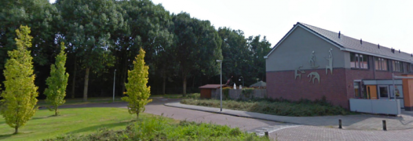 Bij scholencomplex Dronten ??? West aan het Beursplein is het kunstwerk "Fata Morgana" van Thomas Elshuis te vinden
