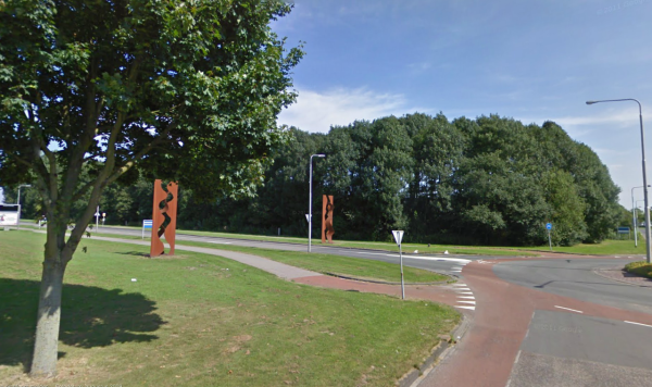 Een sculptuur die gemaakt is door de Eindhovense beeldhouwer Theo van Brunschot. Vroeger stond hier het Gesprek. Datum onbekend.