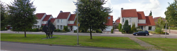 In ruil voor een perceel grond op bedrijvenpark Staalwijk verwierf de gemeente Dronten 4 kunstwerken. Tot deze serie behoort de sculptuur "Out of symmetry". Het beld stat achter de bibliotheek. Uit het zicht?